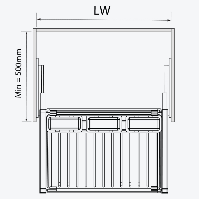 Ghi chú: Sản phẩm có thể nới rộng 2 bên, mỗi bên 48mm. Nên sử dụng cho khoang tủ cao tối thiểu 700mm để quần ko chạm đáy tủ.