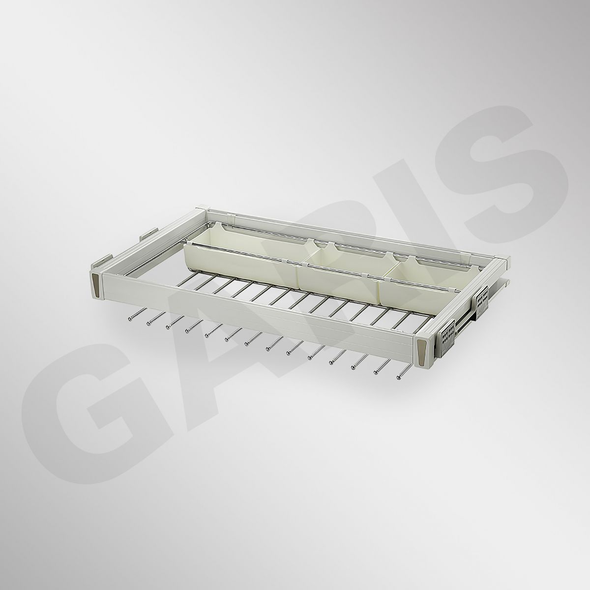 – Bộ ray tích hợp giảm chấn mở toàn phần giúp người sử dụng quan sát được hết tất cả các quần treo trên giá.