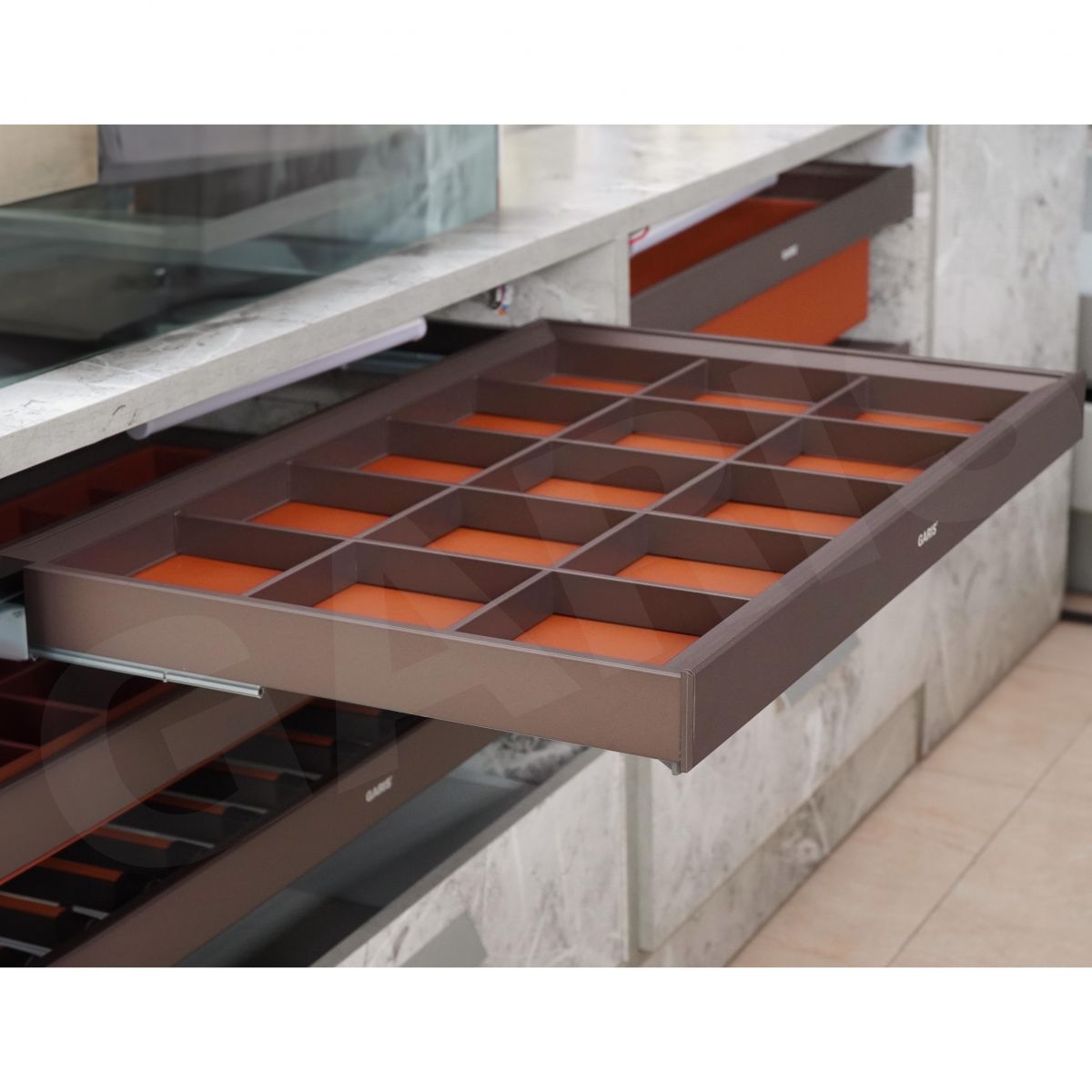 NGĂN KÉO ĐỰNG ĐỒ TRANG SỨC KHUNG NHÔM BỌC DA GW07R